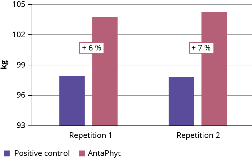 Pigs fed Anta Phyt reached a final weight that was 6.1 kg higher on average, while feed conversion improved by 2.7% (6.5 points). This study demonstrated a two-thirds reduction in the required antibiotic use, with only one active substance being administered instead of 2. In addition, higher meat yield per pig and improved feed efficiency contributed to more sustainable feeding practices. These findings demonstrate that a significant reduction in antibiotic use, while still achieving excellent results, is achievable with the right phytogenic support.