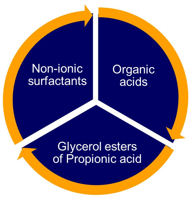 Esterified additives: Provide product-level moisture stability and protection against microbial risks.